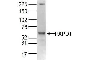 - Anti-PAPD1 Antibody was produced in rabbits by repeated immunizations with a synthetic peptide of human PAPD1 containing an amino acid sequence from the C-terminus of the protein.