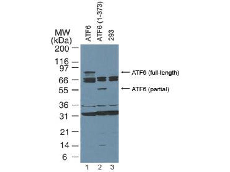 - ATF6 Antibody was produced in mice by repeated immunizations with the partial protein of human ATF6 at the n-terminus of the protein.
