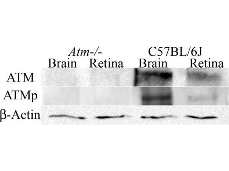 Synonyms: mouse anti-ATM antibody, mouse anti-ATMpS1981 antibody, mouse anti- ATM pS1981 antibody, DKFZp781A0353 antibody, Human phosphatidylinositol 3 kinase homolog antibody, MGC74674 antibody, Serine protein kinase ATM antibody, T cell prolymphocytic leukemia antibody