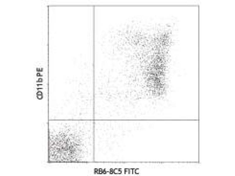Background: Gr-1 is a 21-25 kD protein also known as Ly-6G/Ly-6C. This myeloid differentiation antigen is a glycosylphosphatidylinositol (GPI)-linked protein expressed on granulocytes and macrophages. In bone marrow, the expression levels of Gr-1 directly correlate with granulocyte differentiation and maturation, Gr-1 is also transiently expressed on bone marrow cells in the monocyte lineage. Immature Myeloid Gr-1+ cells play a role in the development of antitumor immunity.
