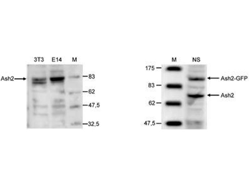 Anti-Ash2 Antibody has been tested by ELISA, Immunofluorescence and Western Blots. Specific conditions for reactivity should be optimized by the end user. Expect a band approximately 68 kDa in the appropriate cell lysate or extract.