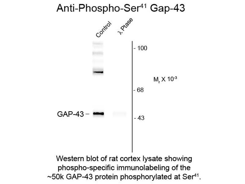 - Anti-GAP43 pS41 antibody was affinity purified from monospecific antiserum by immunoaffinity purification.