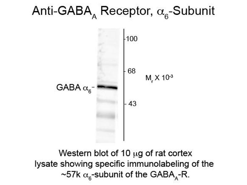 - Anti-GABA(A) Receptor a 6 Antibody was produced by repeated immunizations with rat GABA(A) receptor alpha 6- Synthetic peptide corresponding to amino acid specific to the alpha 6 subunit.
