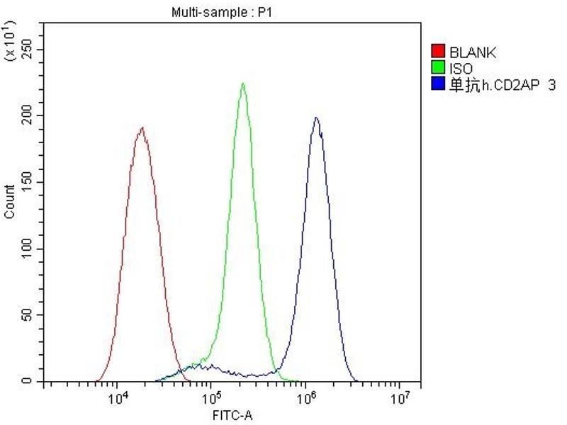 Background: CD2-associated protein is a protein that in humans is encoded by the CD2AP gene. This gene encodes a scaffolding molecule that regulates the actin cytoskeleton. The protein ly interacts with filamentous actin and a variety of cell membrane proteins through multiple actin binding sites, SH3 domains, and a proline-rich region containing binding sites for SH3 domains. The cytoplasmic protein localizes to membrane ruffles, lipid rafts, and the leading edges of cells. It is implicated in dynamic actin remodeling and membrane trafficking that occurs during receptor endocytosis and cytokinesis. Haploinsufficiency of this gene is implicated in susceptibility to glomerular disease.