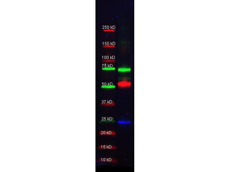 Anti-GST DyLight™ 549 has ben tested by ELISA and western blot. This product is designed for immunofluorescence microscopy, fluorescence based plate assays (FLISA) and fluorescent western blotting. This product is also suitable for multiplex analysis, including multicolor imaging, utilizing various commercial platforms. The emission spectra for this DyLight™ conjugate match the principle output wavelengths of most common fluorescence instrumentation.