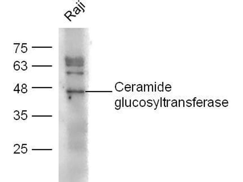 Synonyms: GCS, GLCT1, Ceramide glucosyltransferase, GLCT-1, Glucosylceramide synthase, UDP-glucose ceramide glucosyltransferase, UDP-glucose:N-acylsphingosine D-glucosyltransferase, UGCG
