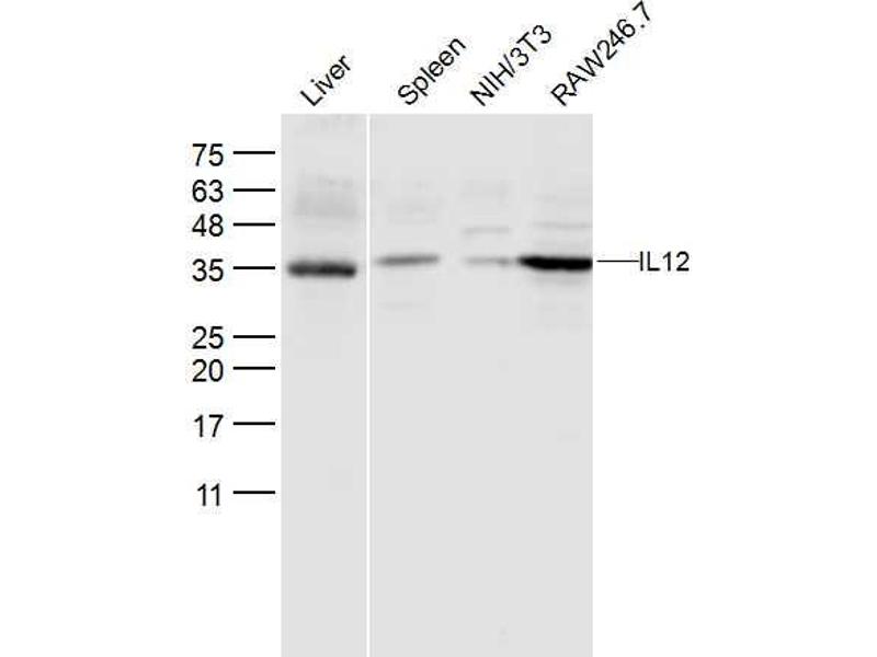 Synonyms: p35, Ll12a, Il-12a, IL-12p35, Interleukin-12 subunit alpha, Cytotoxic lymphocyte maturation factor 35 kDa subunit, CLMF p35, IL-12 subunit p35, Il12a