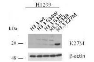 This antibody was generated using a Peptide containing a Methionine substitution at lysine 27 of human Histone H3.