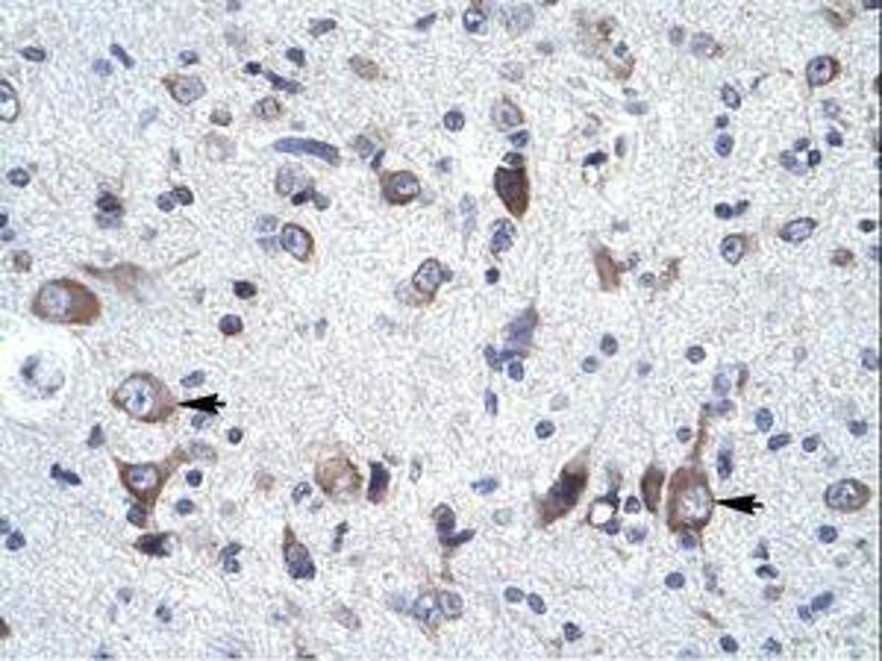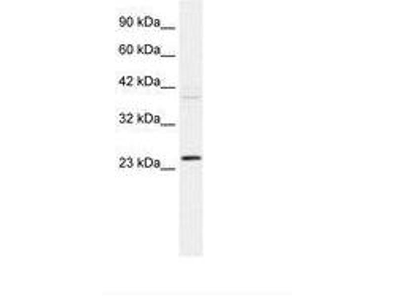 Synthetic peptide from N-Terminus of human NCS1 (P62166, NP_055101). Percent identity by BLAST analysis: Human, Chimpanzee, Orangutan, Mouse, Rat, Elephant, Bovine, Opossum, Zebra finch, Chicken, Xenopus, Stickleback, Pufferfish, Zebrafish (100%), Salmon (92%), Drosophila, Beetle (83%).