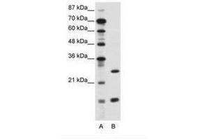 Synthetic peptide located between aa11-60 of human CEBPG (P53567, NP_001797). Percent identity by BLAST analysis: Human, Chimpanzee, Gorilla, Orangutan, Gibbon, Monkey, Marmoset (100%), Galago, Mouse, Rat, Elephant, Panda, Dog, Bovine, Bat, Rabbit, Horse, Platypus (92%), Pig, Opossum, Guinea pig, Zebra finch (85%).