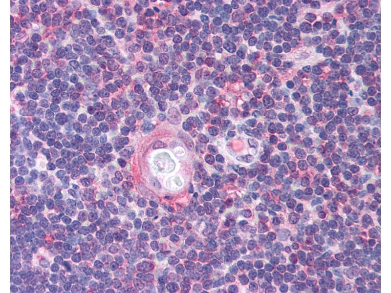 Usage: Immunohistochemistry: This antibody was validated for use in immunohistochemistry on a panel of 21 formalin-fixed, paraffin-embedded (FFPE) human tissues after heat induced antigen retrieval in pH 6.0 citrate buffer. After incubation with the primary antibody, slides were incubated with biotinylated secondary antibody, followed by alkaline phosphatase-streptavidin and chromogen. The stained slides were evaluated by a pathologist to confirm staining specificity. The optimal working concentration for this antibody was determined to be 5 μg/mL. -