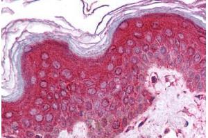 Usage: Immunohistochemistry: This antibody was validated for use in immunohistochemistry on a panel of 21 formalin-fixed, paraffin-embedded (FFPE) human tissues after heat induced antigen retrieval in pH 6.0 citrate buffer. After incubation with the primary antibody, slides were incubated with biotinylated secondary antibody, followed by alkaline phosphatase-streptavidin and chromogen. The stained slides were evaluated by a pathologist to confirm staining specificity. The optimal working concentration for this antibody was determined to be 5 μg/mL. -