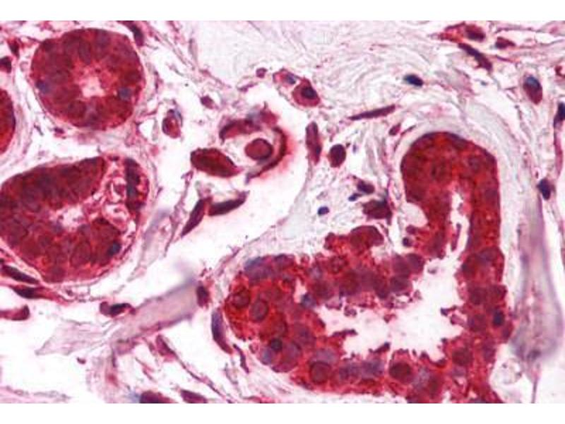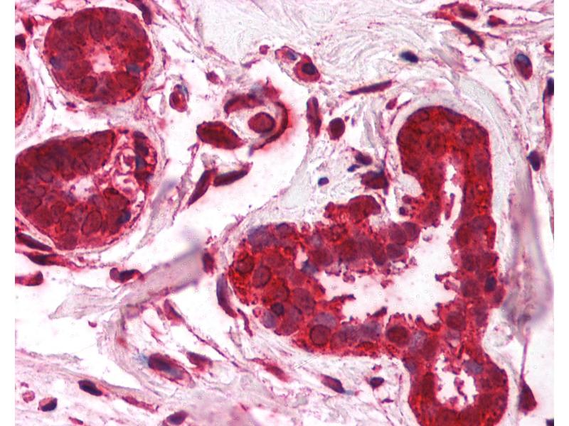 Usage: Immunohistochemistry: This antibody was validated for use in immunohistochemistry on a panel of 21 formalin-fixed, paraffin-embedded (FFPE) human tissues after heat induced antigen retrieval in pH 6.0 citrate buffer. After incubation with the primary antibody, slides were incubated with biotinylated secondary antibody, followed by alkaline phosphatase-streptavidin and chromogen. The stained slides were evaluated by a pathologist to confirm staining specificity. The optimal working concentration for this antibody was determined to be 2.5 μg/mL. -