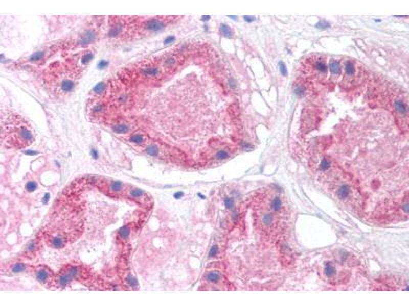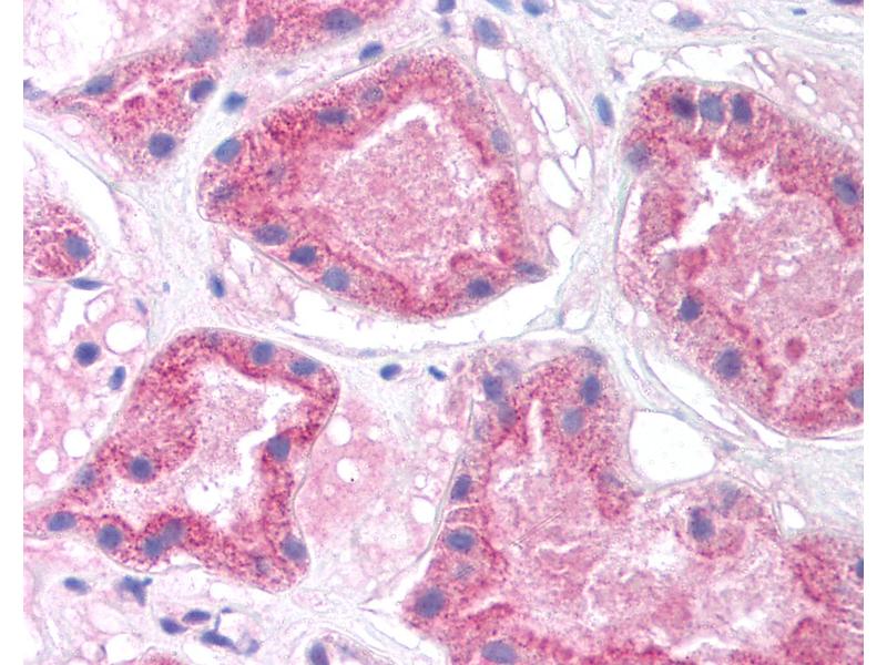 Usage: Immunohistochemistry: This antibody was validated for use in immunohistochemistry on a panel of 21 formalin-fixed, paraffin-embedded (FFPE) human tissues after heat induced antigen retrieval in  pH 6.0 citrate buffer. After incubation with the primary antibody, slides were incubated with biotinylated secondary antibody, followed by alkaline phosphatase-streptavidin and chromogen. The stained slides were evaluated by a pathologist to confirm staining specificity. The optimal working concentration for this antibody was determined to be 5 μg/mL.