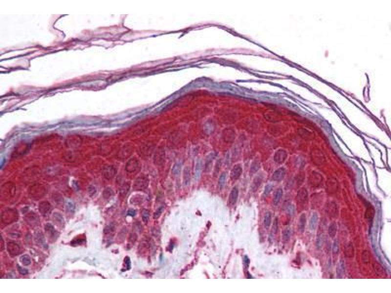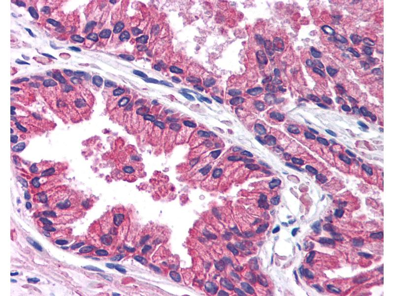 Usage: Immunohistochemistry: This antibody was validated for use in immunohistochemistry on a panel of 21 formalin-fixed, paraffin-embedded (FFPE) human tissues after heat induced antigen retrieval in pH 6.0 citrate buffer. After incubation with the primary antibody, slides were incubated with biotinylated secondary antibody, followed by alkaline phosphatase-streptavidin and chromogen. The stained slides were evaluated by a pathologist to confirm staining specificity. The optimal working concentration for this antibody was determined to be 5 μg/mL. -