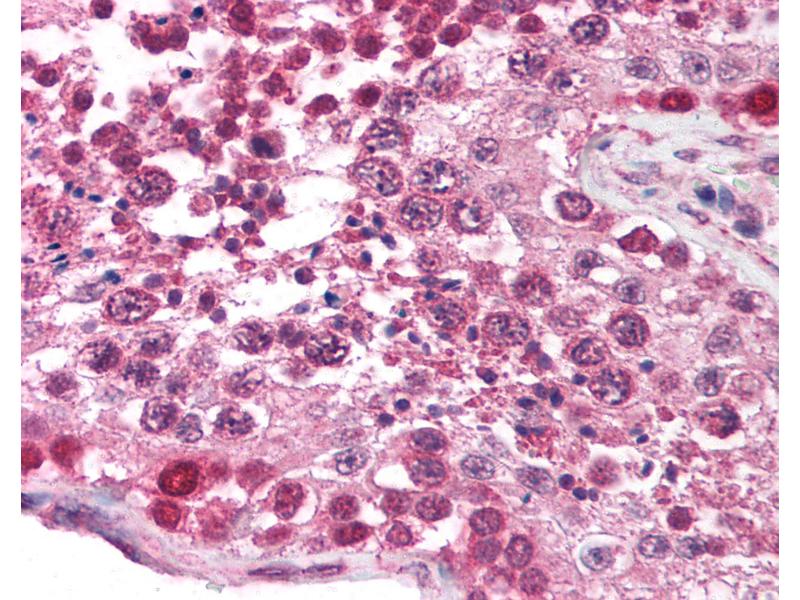 Usage: Immunohistochemistry: This antibody was validated for use in immunohistochemistry on a panel of 21 formalin-fixed, paraffin-embedded (FFPE) human tissues after heat induced antigen retrieval in pH 6.0 citrate buffer. After incubation with the primary antibody, slides were incubated with biotinylated secondary antibody, followed by alkaline phosphatase-streptavidin and chromogen. The stained slides were evaluated by a pathologist to confirm staining specificity. The optimal working concentration for this antibody was determined to be 2.5 μg/mL. -
