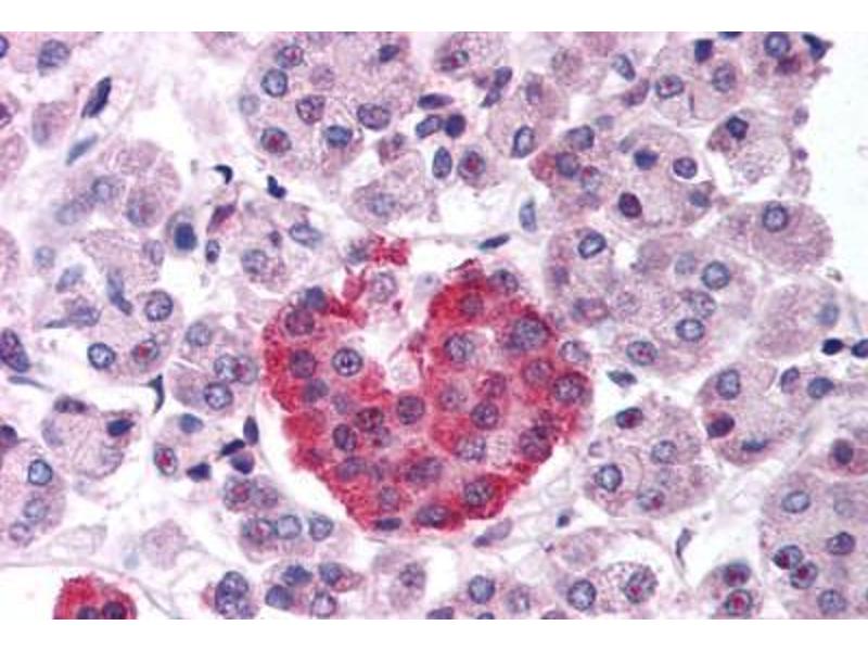 Usage: Immunohistochemistry: This antibody was validated for use in immunohistochemistry on a panel of 21 formalin-fixed, paraffin-embedded (FFPE) human tissues after heat induced antigen retrieval in pH 6.0 citrate buffer. After incubation with the primary antibody, slides were incubated with biotinylated secondary antibody, followed by alkaline phosphatase-streptavidin and chromogen. The stained slides were evaluated by a pathologist to confirm staining specificity. The optimal working concentration for this antibody was determined to be 5 μg/mL. -