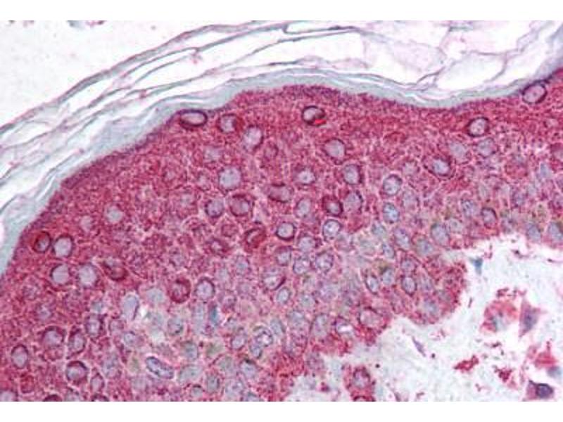 Usage: Immunohistochemistry: This antibody was validated for use in immunohistochemistry on a panel of 21 formalin-fixed, paraffin-embedded (FFPE) human tissues after heat induced antigen retrieval in pH 6.0 citrate buffer. After incubation with the primary antibody, slides were incubated with biotinylated secondary antibody, followed by alkaline phosphatase-streptavidin and chromogen. The stained slides were evaluated by a pathologist to confirm staining specificity. The optimal working concentration for this antibody was determined to be 5 μg/mL. -