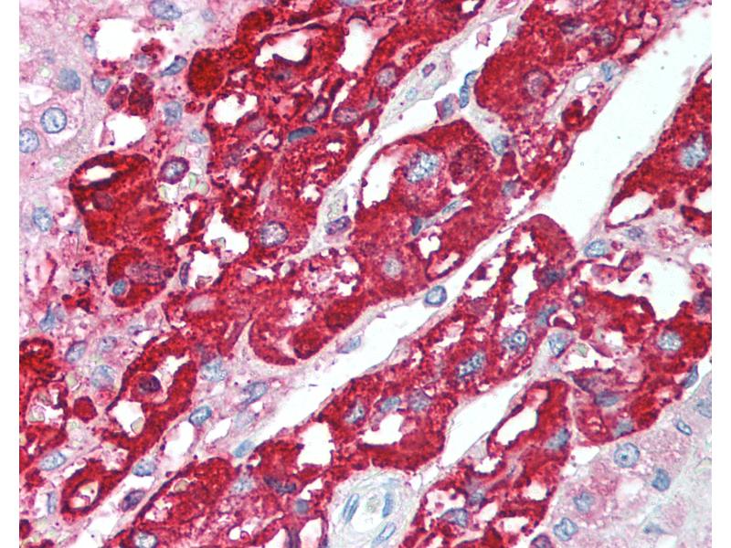 Usage: Immunohistochemistry: This antibody was validated for use in immunohistochemistry on a panel of 21 formalin-fixed, paraffin-embedded (FFPE) human tissues after heat induced antigen retrieval in pH 6.0 citrate buffer. After incubation with the primary antibody, slides were incubated with biotinylated secondary antibody, followed by alkaline phosphatase-streptavidin and chromogen. The stained slides were evaluated by a pathologist to confirm staining specificity. The optimal working concentration for this antibody was determined to be 5 μg/mL. -