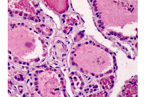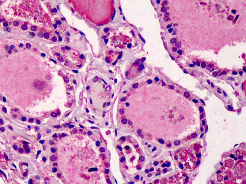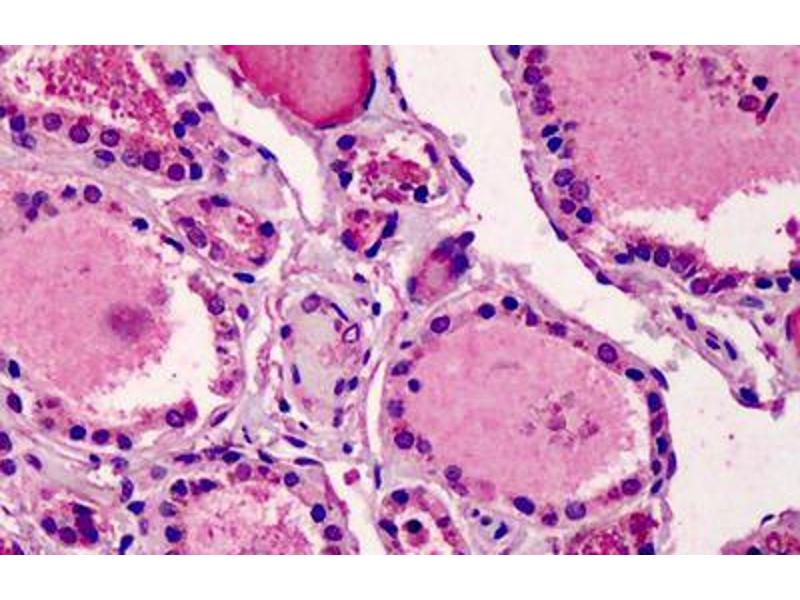Usage: Immunohistochemistry: This antibody was validated for use in immunohistochemistry on a panel of 21 formalin-fixed, paraffin-embedded (FFPE) human tissues after heat induced antigen retrieval in pH 6.0 citrate buffer. After incubation with the primary antibody, slides were incubated with biotinylated secondary antibody, followed by alkaline phosphatase-streptavidin and chromogen. The stained slides were evaluated by a pathologist to confirm staining specificity. The optimal working concentration for this antibody was determined to be 5 μg/mL. -