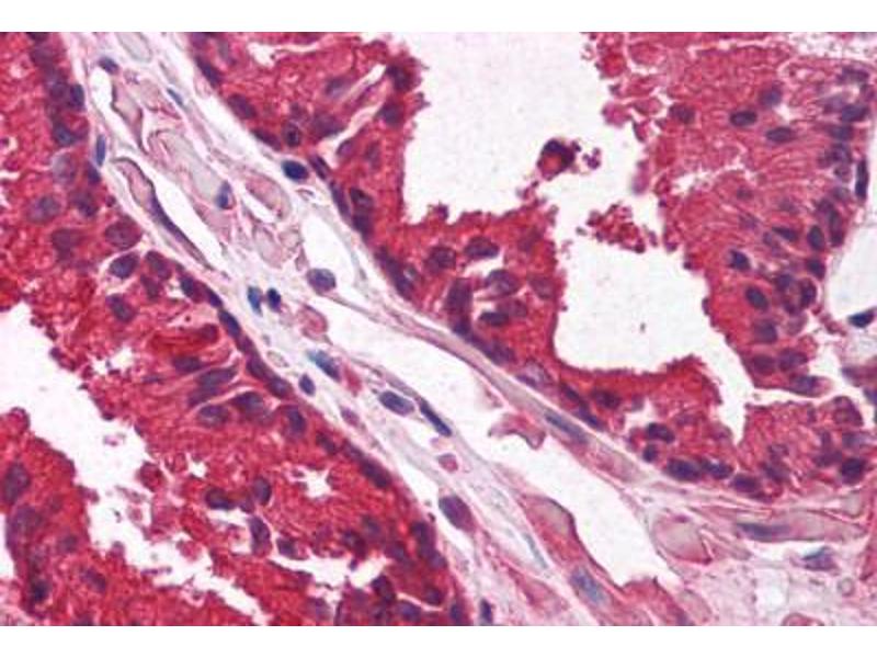Usage: Immunohistochemistry: This antibody was validated for use in immunohistochemistry on a panel of 21 formalin-fixed, paraffin-embedded (FFPE) human tissues after heat induced antigen retrieval in pH 6.0 citrate buffer. After incubation with the primary antibody, slides were incubated with biotinylated secondary antibody, followed by alkaline phosphatase-streptavidin and chromogen. The stained slides were evaluated by a pathologist to confirm staining specificity. The optimal working concentration for this antibody was determined to be 5 μg/mL. -