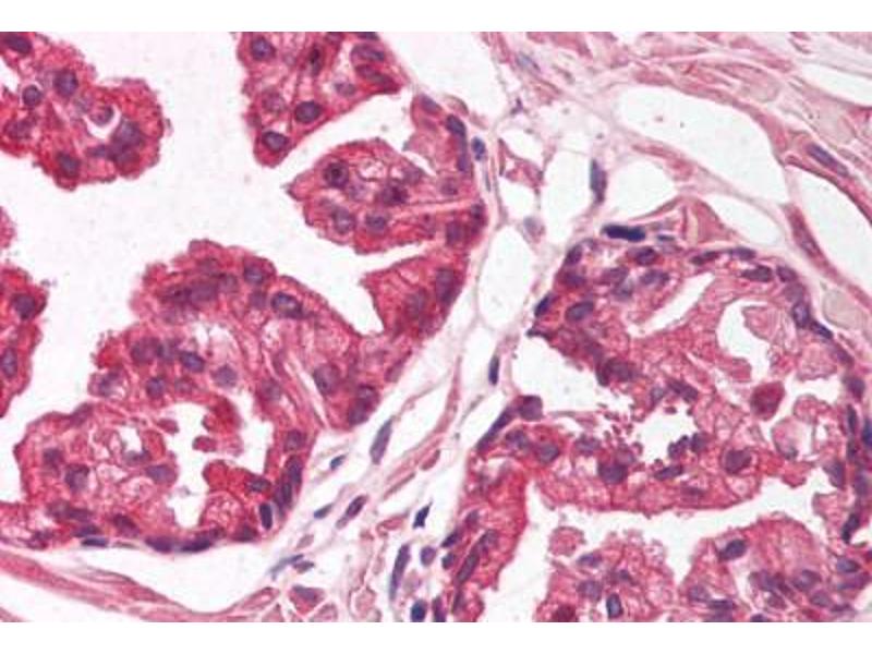 Usage: Immunohistochemistry: This antibody was validated for use in immunohistochemistry on a panel of 21 formalin-fixed, paraffin-embedded (FFPE) human tissues after heat induced antigen retrieval in pH 6.0 citrate buffer. After incubation with the primary antibody, slides were incubated with biotinylated secondary antibody, followed by alkaline phosphatase-streptavidin and chromogen. The stained slides were evaluated by a pathologist to confirm staining specificity. The optimal working concentration for this antibody was determined to be 5 μg/mL. -