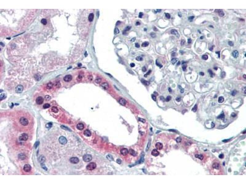Usage: Immunohistochemistry: This antibody was validated for use in immunohistochemistry on a panel of 21 formalin-fixed, paraffin-embedded (FFPE) human tissues after heat induced antigen retrieval in pH 6.0 citrate buffer. After incubation with the primary antibody, slides were incubated with biotinylated secondary antibody, followed by alkaline phosphatase-streptavidin and chromogen. The stained slides were evaluated by a pathologist to confirm staining specificity. The optimal working concentration for this antibody was determined to be 5 μg/mL. -