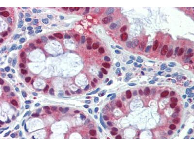 Usage: Immunohistochemistry: This antibody was validated for use in immunohistochemistry on a panel of 21 formalin-fixed, paraffin-embedded (FFPE) human tissues after heat induced antigen retrieval in pH 6.0 citrate buffer. After incubation with the primary antibody, slides were incubated with biotinylated secondary antibody, followed by alkaline phosphatase-streptavidin and chromogen. The stained slides were evaluated by a pathologist to confirm staining specificity. The optimal working concentration for this antibody was determined to be 5 μg/mL. Western Blot: Suggested dilution at 1 μg/mL in 5 % skim milk / PBS buffer, and HRP conjugated anti-Rabbit IgG should be diluted in 1:50000 - 100000 as second antibody. ELISA titer in peptide based assay: 1:12500. -