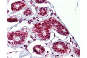 Usage: Immunohistochemistry: This antibody was validated for use in immunohistochemistry on a panel of 21 formalin-fixed, paraffin-embedded (FFPE) human tissues after heat induced antigen retrieval in pH 6.0 citrate buffer. After incubation with the primary antibody, slides were incubated with biotinylated secondary antibody, followed by alkaline phosphatase-streptavidin and chromogen. The stained slides were evaluated by a pathologist to confirm staining specificity. The optimal working concentration for this antibody was determined to be 5 μg/mL. Western Blot: Suggested dilution at 1 μg/mL in 5 % skim milk / PBS buffer, and HRP conjugated anti-Rabbit IgG should be diluted in 1:50000 - 100000 as second antibody. ELISA titer in peptide based assay: 1:1562500. -