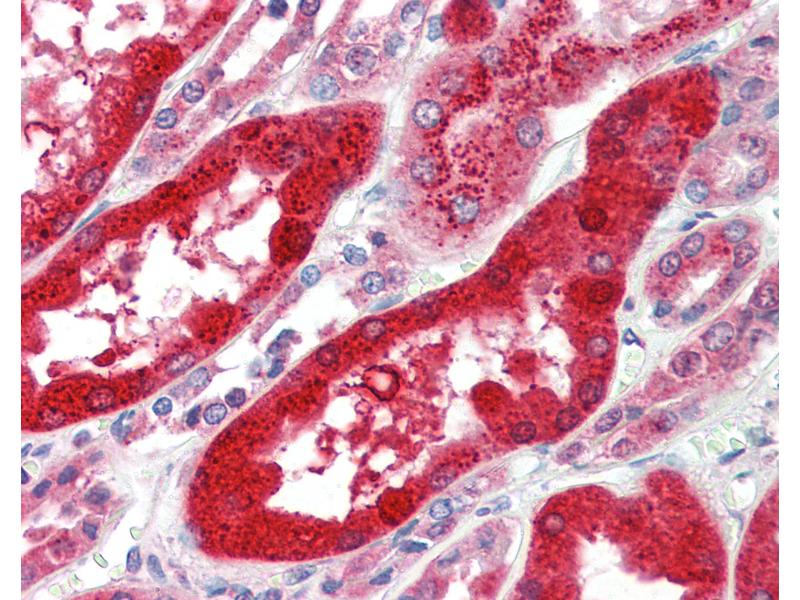 Usage: Immunohistochemistry: This antibody was validated for use in immunohistochemistry on a panel of 21 formalin-fixed, paraffin-embedded (FFPE) human tissues after heat induced antigen retrieval in  pH 6.0 citrate buffer. After incubation with the primary antibody, slides were incubated with biotinylated secondary antibody, followed by alkaline phosphatase-streptavidin and chromogen. The stained slides were evaluated by a pathologist to confirm staining specificity. The optimal working concentration for this antibody was determined to be 5 μg/mL. Western Blot: Suggested dilution at 1 μg/mL in 5 % skim milk / PBS buffer, and HRP conjugated anti-Rabbit IgG should be diluted in 1:50000 - 100000 as second antibody. ELISA titer in peptide based assay: 1:312500.