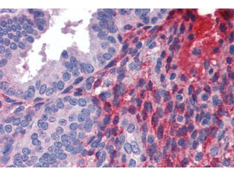 Usage: Immunohistochemistry: This antibody was validated for use in immunohistochemistry on a panel of 21 formalin-fixed, paraffin-embedded (FFPE) human tissues after heat induced antigen retrieval in pH 6.0 citrate buffer. After incubation with the primary antibody, slides were incubated with biotinylated secondary antibody, followed by alkaline phosphatase-streptavidin and chromogen. The stained slides were evaluated by a pathologist to confirm staining specificity. The optimal working concentration for this antibody was determined to be 5 μg/mL. -