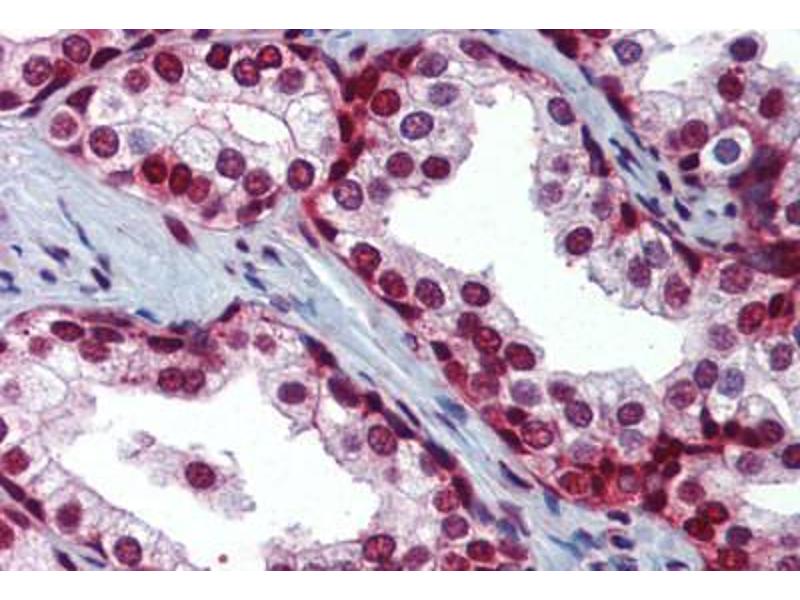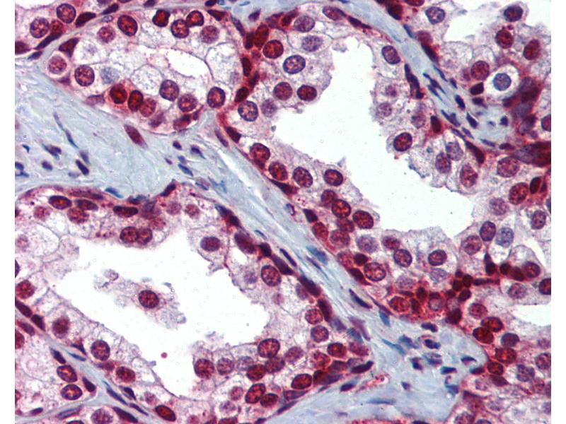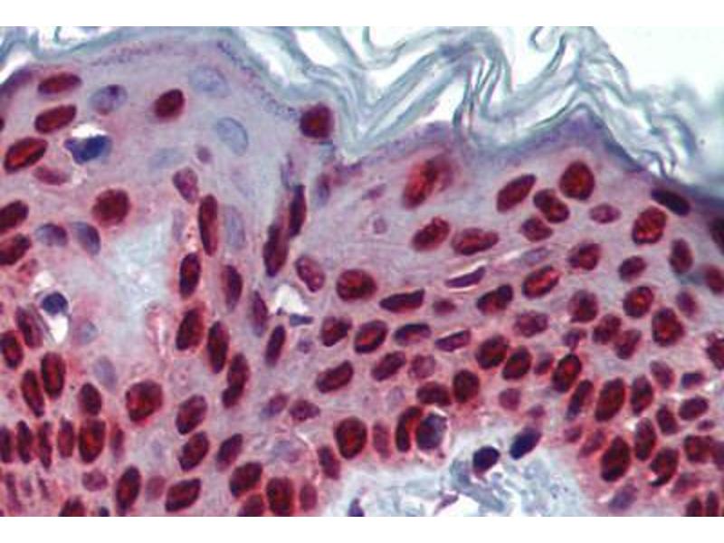 Usage: Immunohistochemistry: This antibody was validated for use in immunohistochemistry on a panel of 21 formalin-fixed, paraffin-embedded (FFPE) human tissues after heat induced antigen retrieval in pH 6.0 citrate buffer. After incubation with the primary antibody, slides were incubated with biotinylated secondary antibody, followed by alkaline phosphatase-streptavidin and chromogen. The stained slides were evaluated by a pathologist to confirm staining specificity. The optimal working concentration for this antibody was determined to be 5 μg/mL. ELISA titer using peptide based assay: 1:62500. Western Blot: Suggested dilution at 1 μg/mL in 5 % skim milk / PBS buffer, and HRP conjugated anti-Rabbit IgG should be diluted in 1:50000 - 100000 as second antibody. -