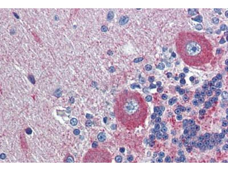 Synthetic peptide from N-Terminus of human GPR6 (P46095, NP_005275). Percent identity by BLAST analysis: Human, Chimpanzee, Gorilla, Gibbon (100%), Monkey, Mouse (92%), Marmoset, Rat, Hamster, Bovine (85%).