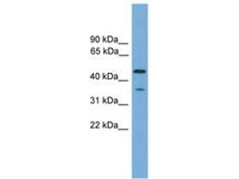 Synthetic peptide from N-Terminus of human LRRC73 (Q5JTD7, NP_001012992). Percent identity by BLAST analysis: Human, Chimpanzee, Gorilla, Gibbon, Monkey, Galago, Marmoset, Mouse, Rat, Elephant, Panda, Bovine, Rabbit, Pig, Guinea pig (100%), Goat, Opossum, Zebra finch, Chicken, Lizard (92%), Xenopus (84%).