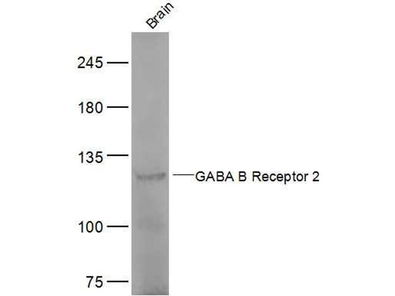 Background: Component of a heterodimeric G-protein coupled receptor for GABA, formed by GABBR1 and GABBR2. Within the heterodimeric GABA receptor, only GABBR1 seems to bind agonists, while GABBR2 mediates coupling to G proteins. Ligand binding causes a conformation change that triggers signaling via guanine nucleotide-binding proteins (G proteins) and modulates the activity of down-stream effectors, such as adenylate cyclase. Signaling inhibits adenylate cyclase, stimulates phospholipase A2, activates potassium channels, inactivates voltage-dependent calcium-channels and modulates inositol phospholipid hydrolysis. Plays a critical role in the fine-tuning of inhibitory synaptic transmission. Pre-synaptic GABA receptor inhibits neurotransmitter release by down-regulating high-voltage activated calcium channels, whereas postsynaptic GABA receptor decreases neuronal excitability by activating a prominent inwardly rectifying potassium (Kir) conductance that underlies the late inhibitory postsynaptic potentials. Not only implicated in synaptic inhibition but also in hippocampal long-term potentiation, slow wave sleep, muscle relaxation and antinociception.