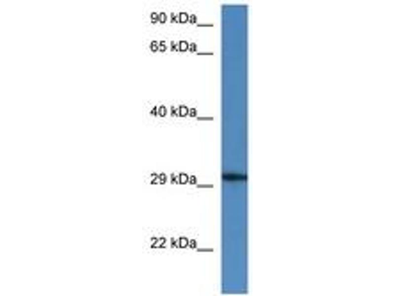 Synthetic peptide from N-Terminus of mouse Harbi1 (Q8BR93, NP_848839). Percent identity by BLAST analysis: Human, Gorilla, Gibbon, Galago, Marmoset, Mouse, Rat, Hamster, Elephant, Panda, Dog, Bovine, Rabbit, Horse, Pig, Opossum, Guinea pig, Platypus (100%), Monkey, Bat, Turkey, Zebra finch, Chicken, Lizard (92%), Xenopus (85%).