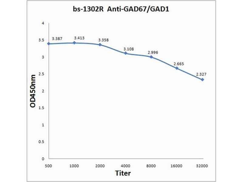Background: Glutamic Acid Decarboxylase (GAD) catalyzes the conversion of L glutamate to g-aminobutyric acid (GABA), the principal inhibitory neurotransmitter in the brain, and a putative paracrine signal molecule in pancreatic islets. GAD has a restricted tissue distribution. It is highly expressed in the cytoplasm of GABAergic neurons in the central nervous system (CNS) and pancreatic beta cells. It is also present in other non-neuronal tissues such as testis, oviduct and ovary. GAD is also transiently expressed in non-GABAergic cells of the embryonic and adult nervous system, suggesting its involvement in development and plasticity. GAD exists as two isoforms, GAD65 and GAD67 (molecular masses of 65 and 67 kD, respectively) that are encoded by two different genes. GAD65 is an ampiphilic, membraneanchored protein, (585 amino acid residues) and is encoded on human chromosome 10. GAD67 is a cytoplasmic protein (594 amino acid residues) and is encoded on chromosome 2. There is 64 % amino acid identity between the two isoforms, with the highest diversity located at the N terminus, which in GAD65 is required for targeting the enzyme to GABA-containing secretory vesicles. The two isoforms appear to have distinct intraneuronal distribution in the brain. GAD65 has been identified as an autoantigen in insulindependent diabetes mellitus (IDDM) and stiff-man syndrome (SMS), IDDM is an autoimmune disease that results from T cell mediated destruction of pancreatic insulin-secreting beta cells. Islet-reactive T cells and primarily to GAD65 (also named beta cell autoantigen) can be detected in peripheral blood of 80 % of recent-onset IDD patients and in pre-diabetic high-risk subjects before onset of clinical symptoms. This suggests that GAD may be an important marker in the early stages of the disease.