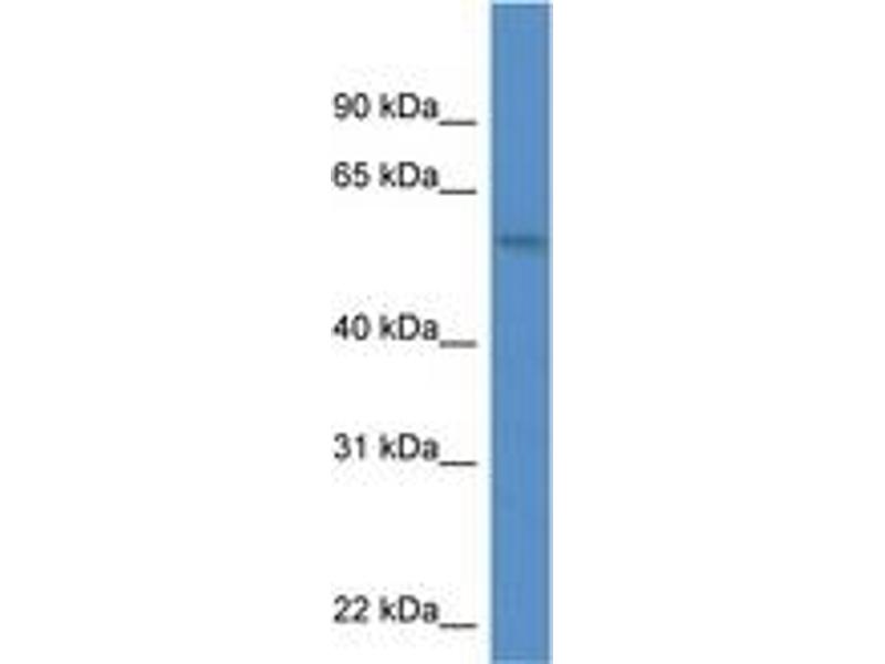Synthetic peptide located between aa376-425 of human MON1A (Q86VX9, NP_001135973). Percent identity by BLAST analysis: Human, Chimpanzee, Gorilla, Gibbon, Monkey, Galago, Marmoset, Rat, Hamster, Elephant, Panda, Dog, Rabbit, Horse, Pig, Guinea pig (100%), Mouse, Bovine, Bat, Platypus (92%), Opossum (85%).