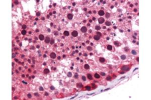 Synthetic peptide located between aa38-87 of human KLF9 (Q13886, NP_001197). Percent identity by BLAST analysis: Human, Chimpanzee, Gorilla, Gibbon, Monkey, Galago, Marmoset, Mouse, Rat, Hamster, Elephant, Panda, Bovine, Bat, Rabbit, Horse, Pig, Guinea pig (100%), Opossum (92%), Dog (85%).