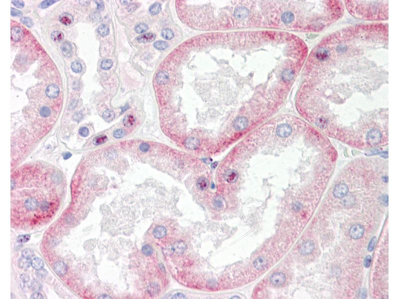 Synthetic peptide from C-Terminus of human SLC22A6 (Q4U2R8, NP_004781). Percent identity by BLAST analysis: Human, Chimpanzee, Gorilla, Orangutan, Gibbon, Monkey, Galago, Mouse, Rat, Bovine, Rabbit, Horse, Pig (100%), Marmoset, Elephant, Panda, Dog (92%), Guinea pig (85%), Salmon, Zebrafish (84%).