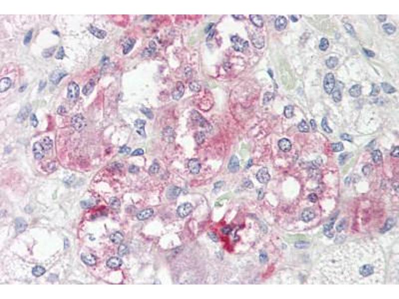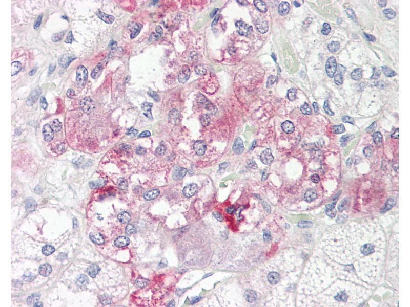 Synthetic peptide from N-Terminus of human RALBP1 (Q15311, NP_006779). Percent identity by BLAST analysis: Human, Chimpanzee, Gorilla, Gibbon, Monkey, Marmoset, Mouse, Rat, Hamster, Elephant, Panda, Dog, Bovine, Bat, Rabbit, Horse, Pig, Opossum (100%), Galago, Guinea pig, Xenopus (92%), Goat (85%).
