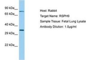 Synthetic peptide located between aa99-148 of human RSPH9 (Q9H1X1, NP_689945). Percent identity by BLAST analysis: Human, Chimpanzee, Orangutan, Monkey, Marmoset, Bovine, Pig (100%), Gibbon, Galago, Mouse (92%), Panda, Dog, Horse (85%), Rat (78%).