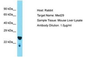 Synthetic peptide located between aa98-147 of mouse Med29 (Q9DB91, NP_080318). Percent identity by BLAST analysis: Mouse (100%).