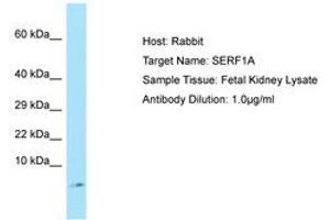 Synthetic peptide from C-Terminus of human SERF1A (O75920, NP_075257). Percent identity by BLAST analysis: Human, Chimpanzee, Gorilla, Orangutan, Monkey, Marmoset, Mouse, Rat, Elephant, Opossum, Guinea pig (100%), Bovine, Zebra finch (92%), Chicken (85%).
