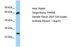 Synthetic peptide located between aa22-71 of human FARSB (Q9NSD9, NP_005678). Percent identity by BLAST analysis: Human, Chimpanzee, Orangutan, Gibbon, Monkey (100%), Galago, Rat, Rabbit (92%), Marmoset, Panda, Dog, Bat, Pig, Platypus (85%).