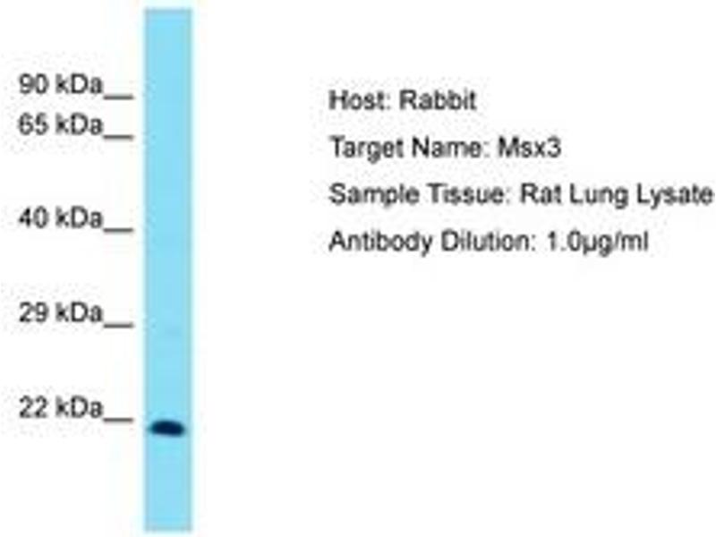 Synthetic peptide from C-Terminus of rat Msx3 (G3V8C7, NP_446164). Percent identity by BLAST analysis: Rat (100%).