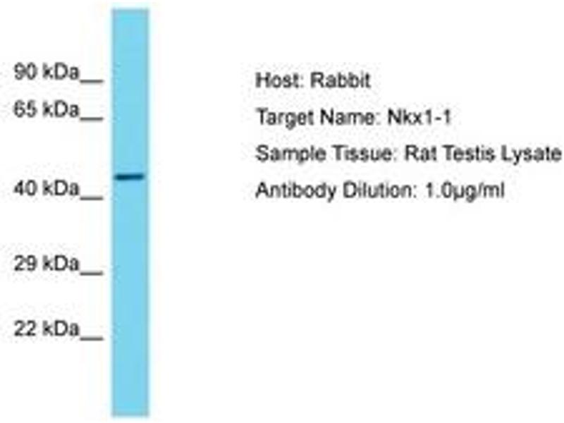Synthetic peptide located between aa114-163 of rat Nkx1-1. Percent identity by BLAST analysis: Rat (100%).