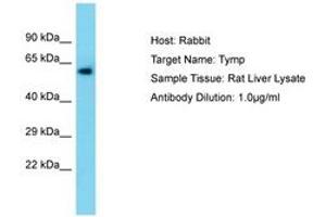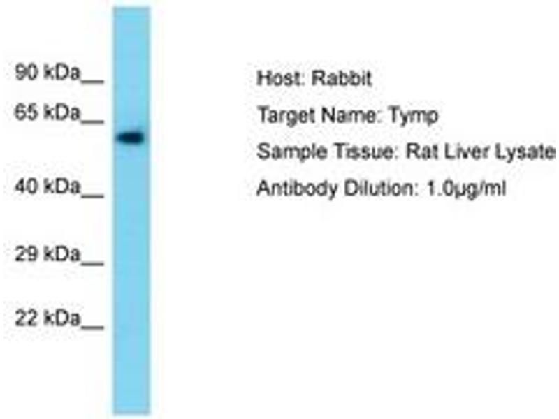 Synthetic peptide located between aa89-138 of rat Tymp (Q5FVR2, NP_001012122). Percent identity by BLAST analysis: Mouse, Rat (100%).
