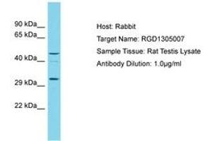 Synthetic peptide located between aa95-144 of rat Ogfod3 (Q5M843, NP_001013998). Percent identity by BLAST analysis: Mouse, Rat (100%).