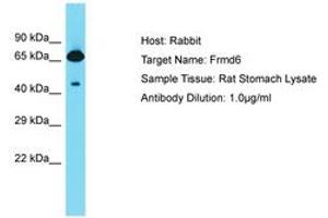Synthetic peptide located between aa527-576 of rat Frmd6 (F1LR29). Percent identity by BLAST analysis: Human, Chimpanzee, Mouse, Rat, Bovine (100%).